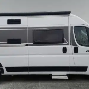 En cuanto al equipamiento, incluye panel solar, toldo exterior y mosquitera en la puerta lateral. Incorpora ventanas de doble acristalamiento, claraboya amplia, escalón eléctrico, sensores de aparcamiento traseros y soluciones prácticas de almacenaje.