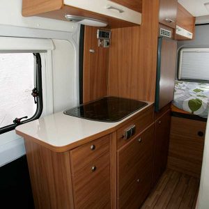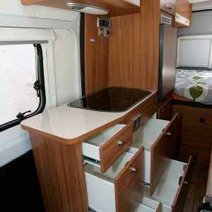 La Weinsberg CaraBus de seis metros es un prodigio del aprovechamiento alemán, ideal para familias que buscan movilidad y confort. Su elemento más innovador es el sistema de doble litera trasera, que ofrece cuatro plazas fijas de descanso sin comprometer las dimensiones compactas del vehículo.