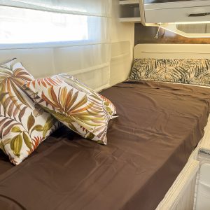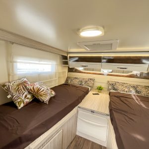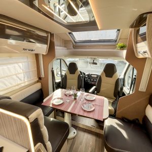 La Elnagh T-Loft 530 es la máxima expresión del diseño italiano para quienes buscan amplitud y elegancia en sus trayectos. En su zona posterior, las camas gemelas de gran formato garantizan un descanso independiente de alta calidad, pudiendo unirse para formar una superficie matrimonial inmensa.