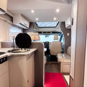Su generoso garaje posterior ofrece un espacio de almacenamiento masivo, ideal para bicicletas o equipaje voluminoso. Con una cocina ergonómica y un baño inteligente, este modelo maximiza el confort en cada ruta.