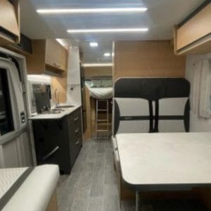 Ofrece camas grandes con diferentes configuraciones y un interior bien equipado, pensado para disfrutar de todas las comodidades a bordo y sentirte como en casa durante tu aventura.