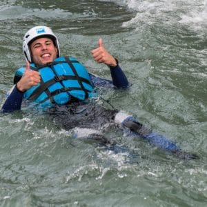 En un tramo muy controlado del río, convertiréis la actividad en un curso de natación lúdico y divertido en aguas bravas, pensado para que los niños aprendan a moverse con seguridad en ríos vivos. A través de juegos, flotaciones, desplazamientos y dinámicas guiadas, descubrirán conceptos básicos de lectura de río, comportamiento del agua y normas esenciales de seguridad. Un aprendizaje práctico que aporta tranquilidad a los padres y que los peques podrán utilizar después en cualquier lugar con corriente —ya sea río, lago o mar— para disfrutar del agua con confianza durante todos vuestros viajes.