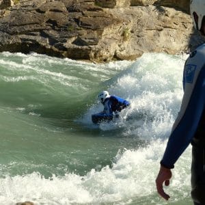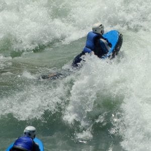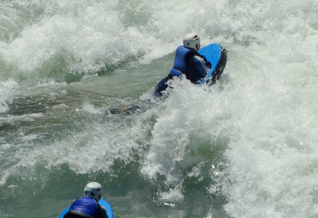 Descenderás los rápidos del río Gállego agarrado a una tabla de flotación, con tu traje reforzado y acompañado por guías expertos que te enseñarán a leer la corriente y a disfrutar del agua de manera segura. Es una experiencia divertida, potente y muy diferente a cualquier otra actividad acuática.