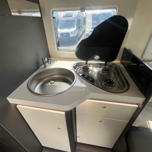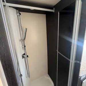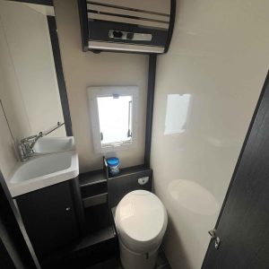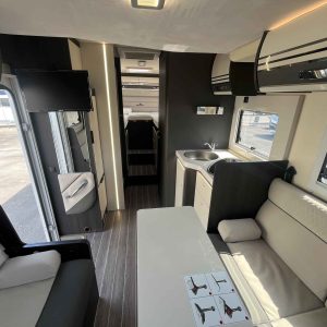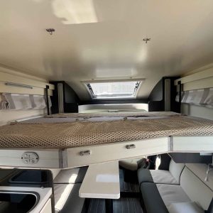 Su diseño interior brilla por la funcionalidad, integrando un aseo con ducha independiente que garantiza total privacidad y comodidad en cada ruta. Bajo la zona de descanso trasera, se oculta un generoso garaje posterior con doble acceso, ofreciendo un gran espacio de almacenaje para bicicletas o equipamiento de aventura.
