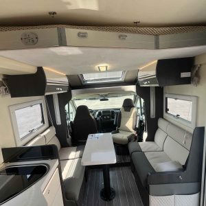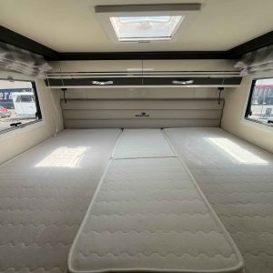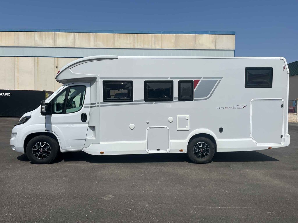 La Roller Team Kronos 287 TL se consolida como una autocaravana perfilada excepcional para quienes buscan el máximo confort. Este modelo destaca por su equilibrada distribución de camas gemelas traseras, que ofrecen un descanso de grandes dimensiones con la posibilidad de unirse para crear una superficie única. La versatilidad del habitáculo se potencia con su cama basculante eléctrica sobre el salón, permitiendo que hasta cuatro personas pernocten en un ambiente moderno y luminoso que optimiza el espacio de convivencia durante el día.