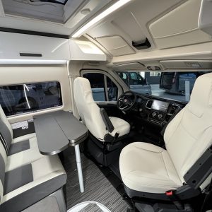 La McLouis Menfys representa el equilibrio ideal entre la agilidad de un furgón y el refinamiento italiano. Su habitáculo está diseñado para maximizar la fluidez, ofreciendo una zona de día acogedora que se integra con una cocina compacta y un baño funcional.