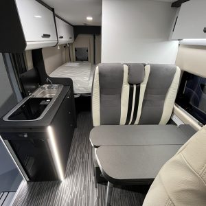 En la parte posterior, el dormitorio garantiza un descanso reparador, mientras que la versatilidad de sus muebles permite organizar el equipaje de forma inteligente. Es un vehículo dinámico, perfecto para familias que buscan libertad total de movimientos y facilidad de estacionamiento, permitiendo pernoctar en entornos naturales con una discreción y autonomía excepcionales en cada trayecto.