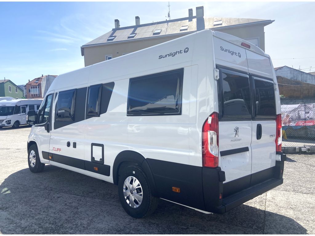 La Sunlight Cliff 640 se presenta como una opción excepcional para quienes desean dormir con la máxima comodidad y el mayor espacio de garaje viajando en una campervan. Este modelo destaca por su generosa longitud, que permite integrar dos camas gemelas traseras de grandes dimensiones, transformables en una superficie de descanso única y espaciosa.