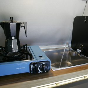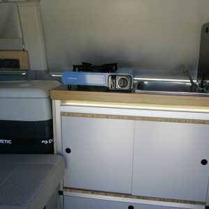 Dispone de 4 plazas para viajar y dormir, con su característico techo elevable que crea una cama amplia en la parte superior. En el interior encontrarás nevera, cocina de gas, fregadero, calefacción estática y armarios bien distribuidos, configurando un espacio práctico y acogedor para viajar en pareja, en familia o con amigos.
