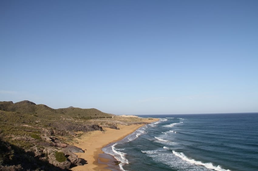 Cerca de La Manga, a tan solo 9 kilómetros de tu parada anterior, se encuentra el impresionante Parque Regional de Calblanque. Esta reserva natural en Murcia te invita a explorar uno de los paisajes más vírgenes de la región. Para acceder, deberás estacionar tu vehículo en un aparcamiento habilitado, desde donde iniciarás una ruta que te llevará hacia una de las playas vírgenes más bonitas de la Región de Murcia. Al ser un espacio natural tan extenso, podrás elegir entre varios recodos de tierra donde disfrutar de un tranquilo picnic con los tuyos.