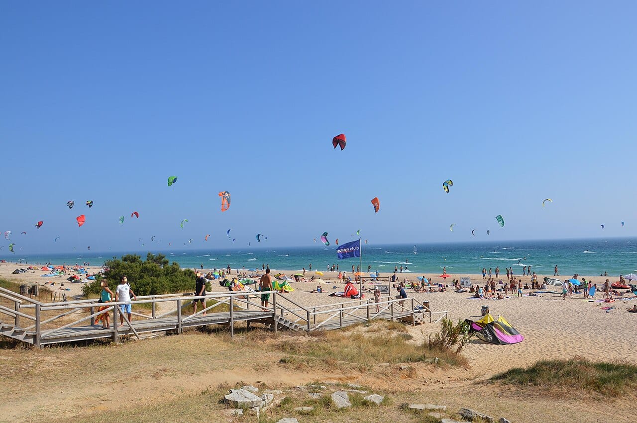 Playa de Los Lances: Con su oleaje suave y espacio abierto, es el lugar perfecto para principiantes en deportes de tabla.