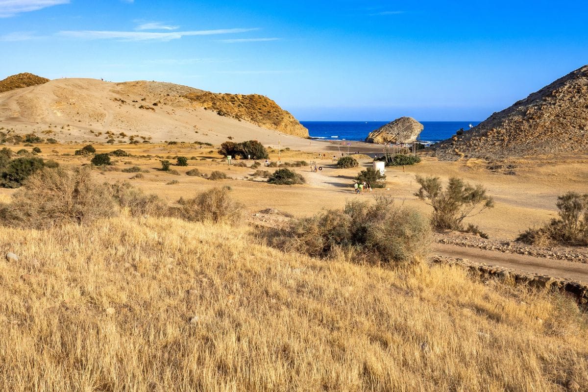 Sin prisa y cuando apetezca, porque una vez instalados, os costará moveros, podéis disfrutar de otra playa muy especial: la Playa de Mónsul. Rodeada de formaciones rocosas volcánicas que, con el paso del tiempo, han adquirido formas caprichosas, este rincón ofrece agua transparente, arena fina y dorada, y un desnivel suave, ideal para un baño tranquilo y relajante.